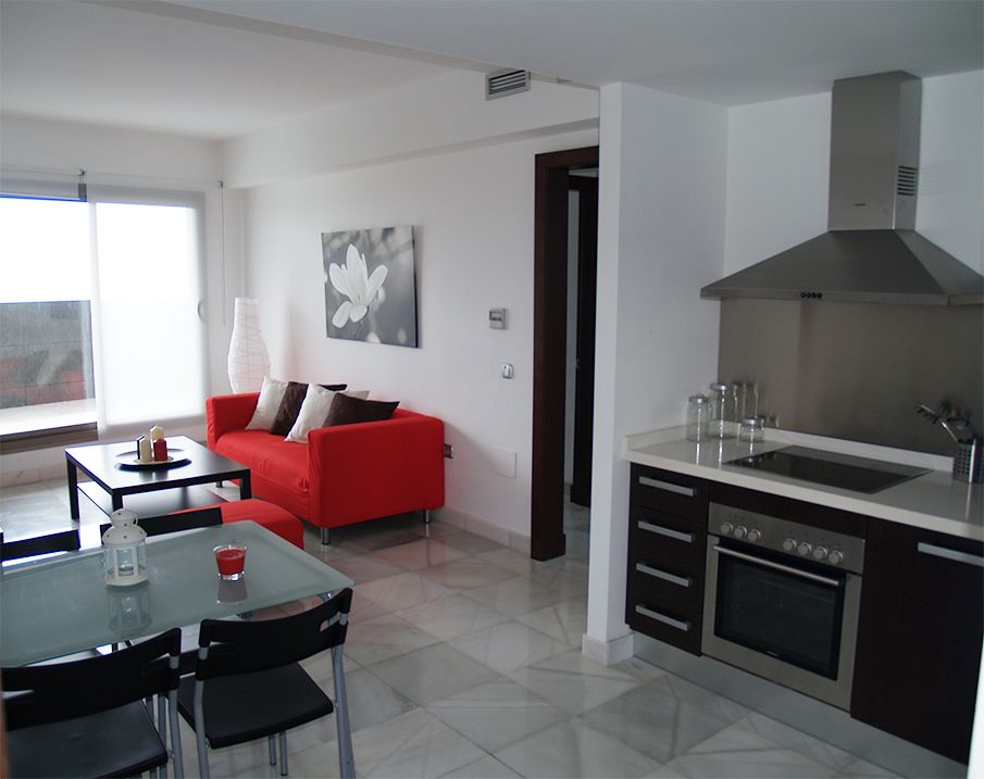 La distribución de los apartamentos era de 1, 2 y 3 dormitorios con baño y algunos también con aseo. En general constaban de acceso a un amplio salón-comedor como espacio único, como entrada y formando parte del espacio una cocina tipo americana.